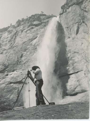 Ansel Adams, Photographing at Base of Yosemite Falls, by George Waters.
