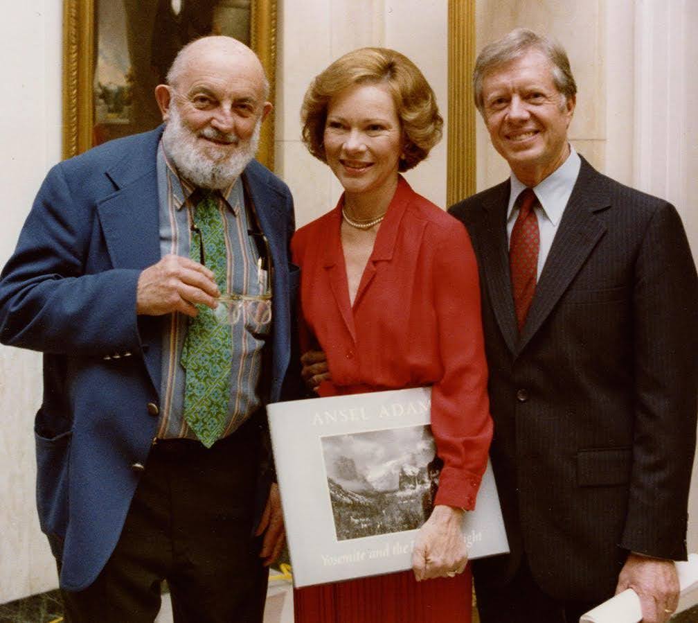 Ansel with Jimmy and Rosalynn Carter with Yosemite Book by John Sexton, 1979.