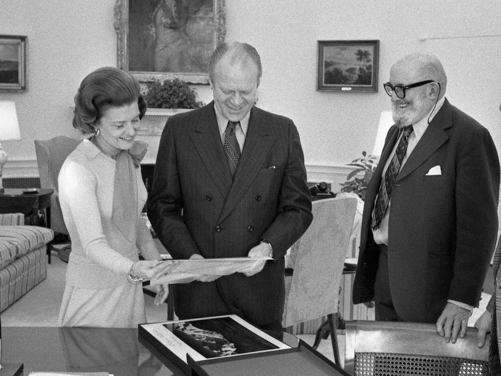 President Gerald R. Ford and First Lady Betty Ford Looking at Photographs in the Oval Office with Ansel Adams and William Turnage, by David Kennerly. Photo courtesy of National Archives Catalogue.