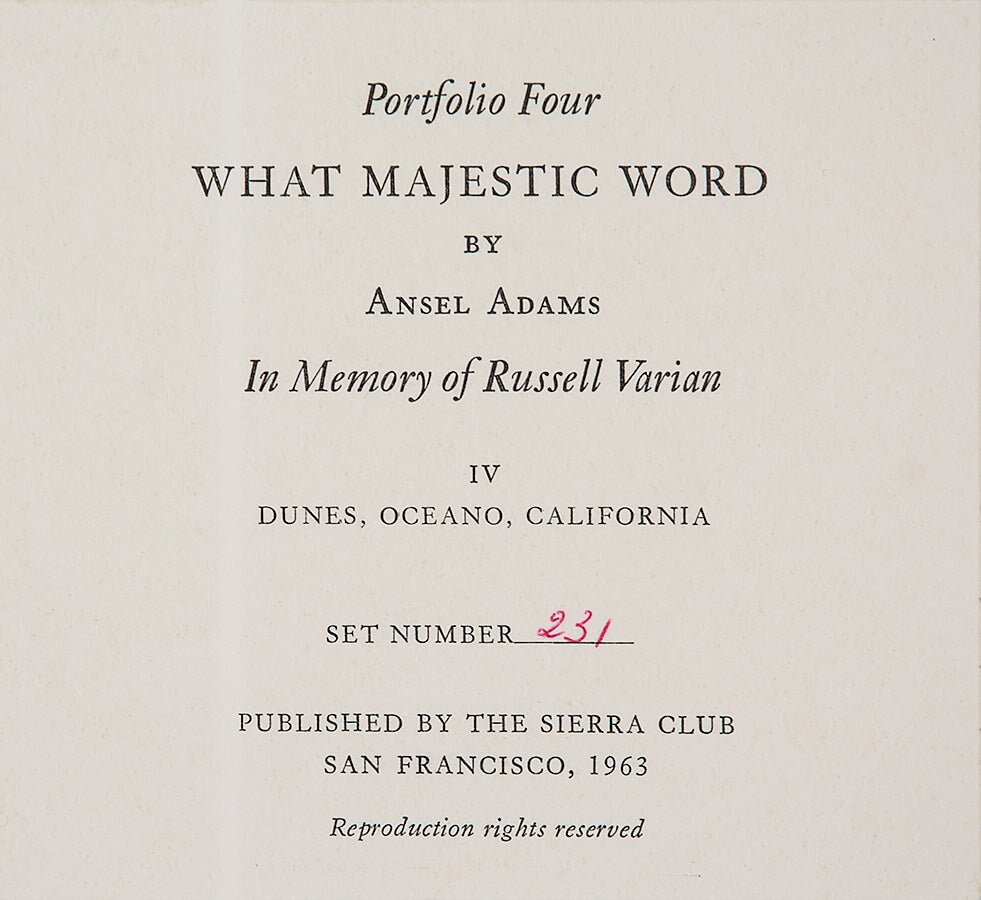 For more information about this or other Ansel Adams Original Photographs call 888-238-9244 or email originals@anseladams.com