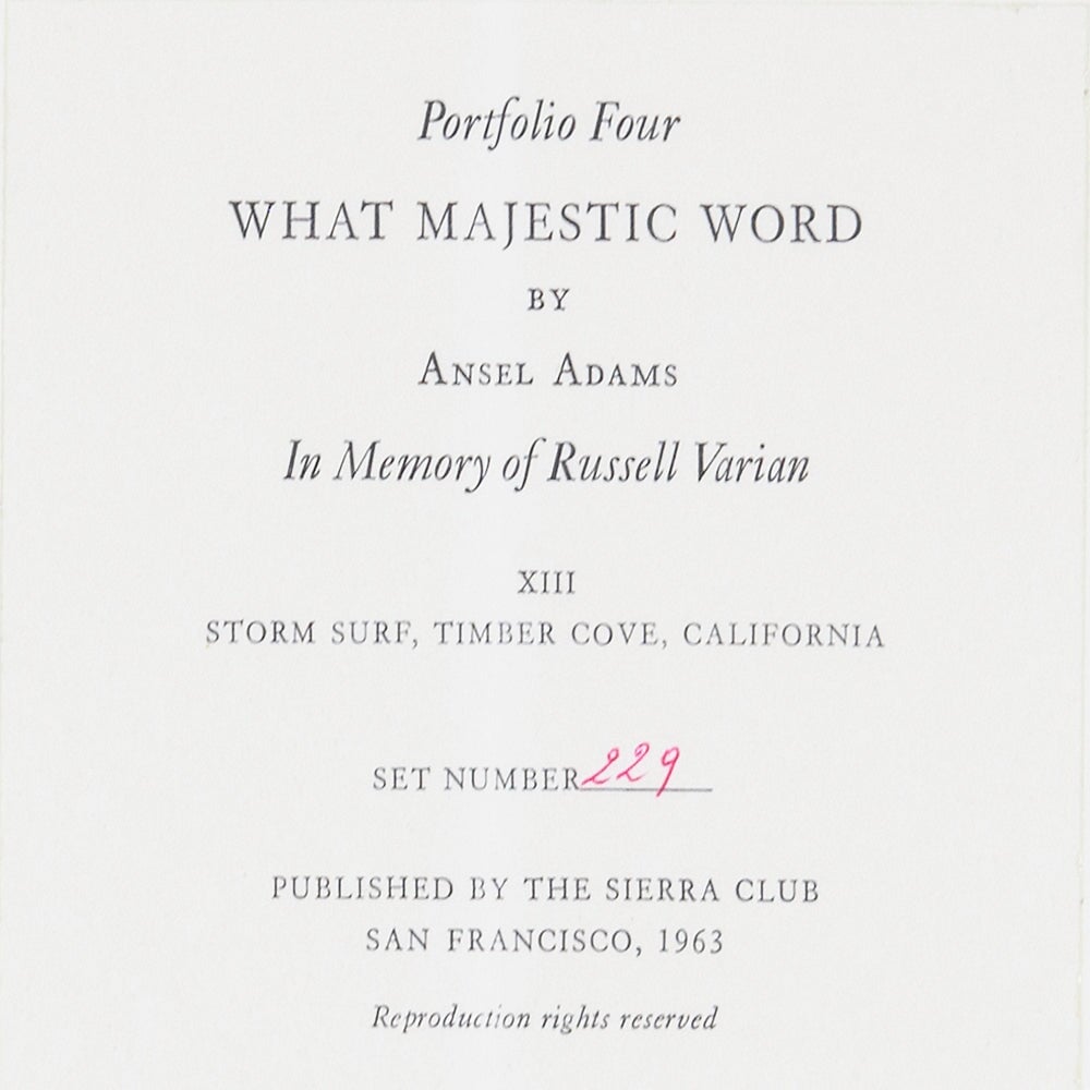 Storm Surf, Timber Cove, California Original Photograph Ansel Adams